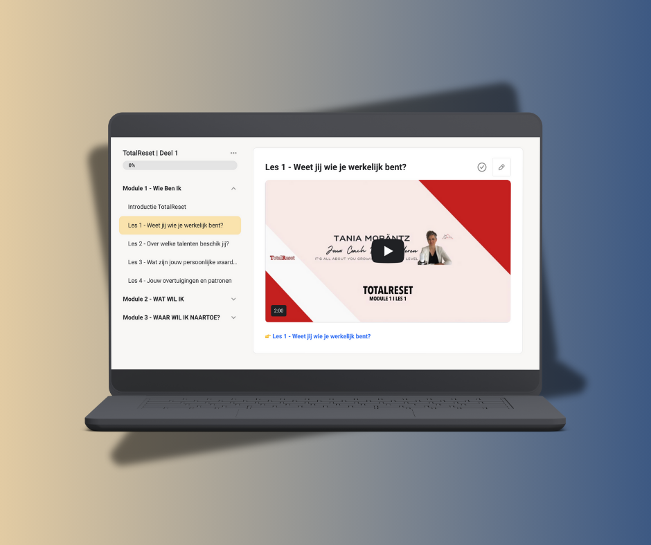 Je krijgt toegang tot ons online platform met trainingen, reflectie-oefeningen en live coachingmomenten. Alles is flexibel te volgen en afgestemd op jouw leven.